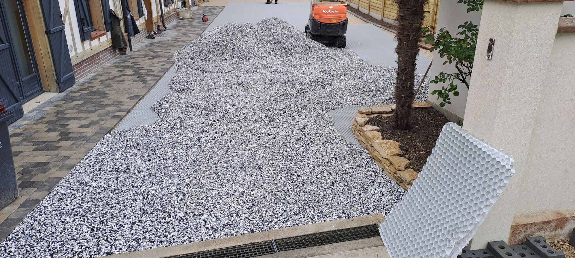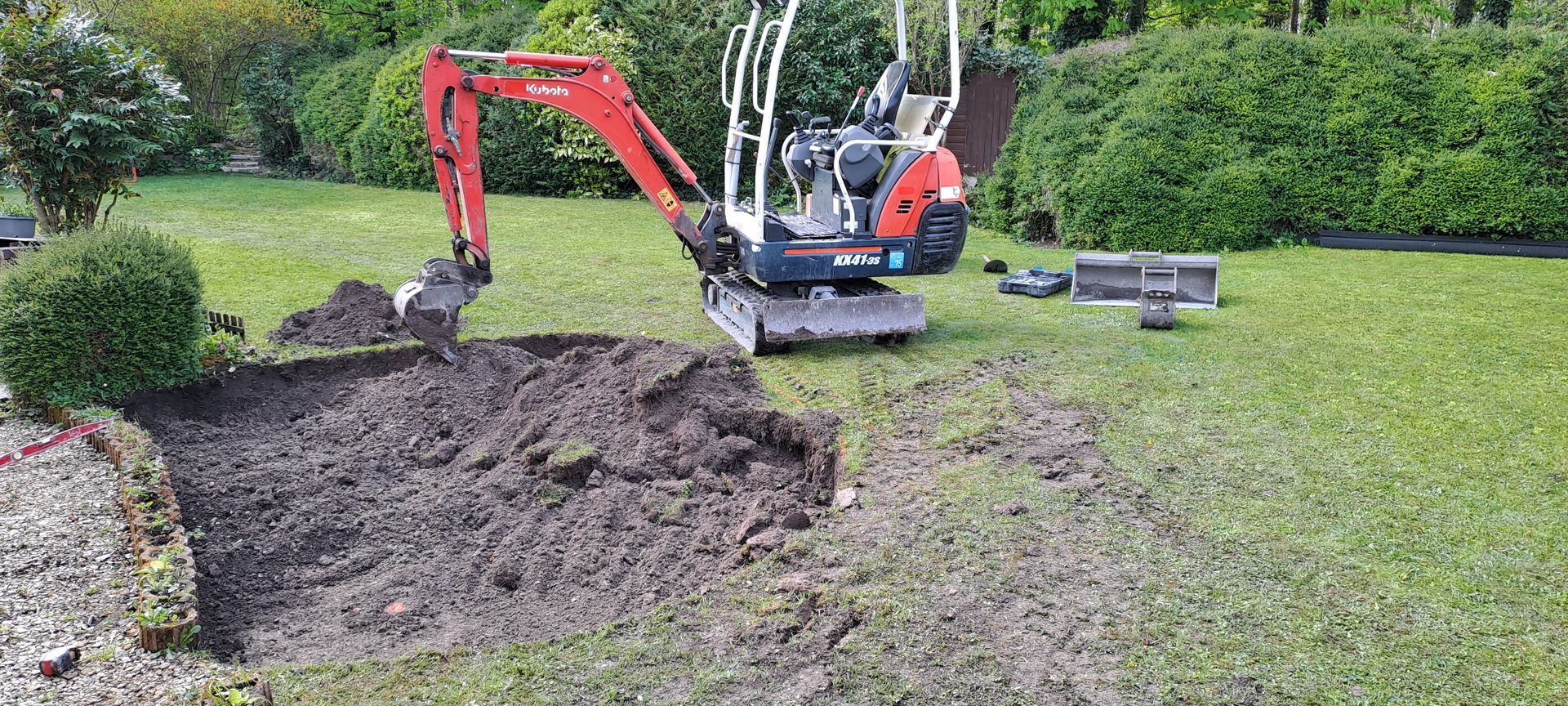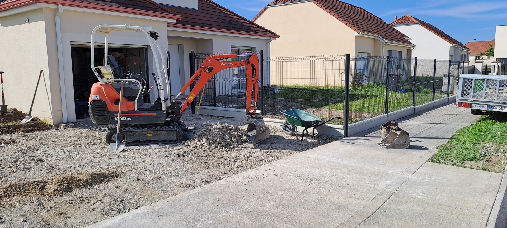 Notre équipe vous accompagne et vous conseille dans vos projets d'aménagements paysagers. Nous réalisons le terrassement d'allées de garage, de cours, pour des fondations, un parking, etc.